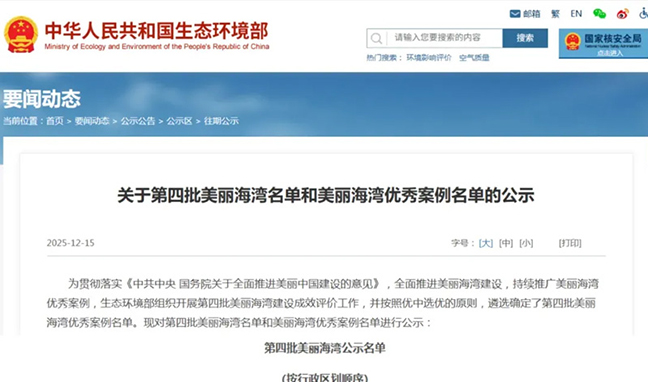 近日,生態(tài)環(huán)境部公布第四批美麗海灣優(yōu)秀案例和名單,鹽城市濱海段成功入選。2026-01-06 -